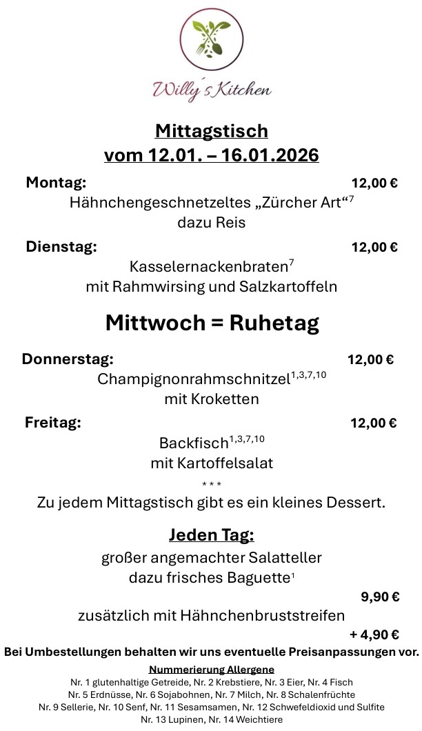 * Mittwochs Ruhetag!